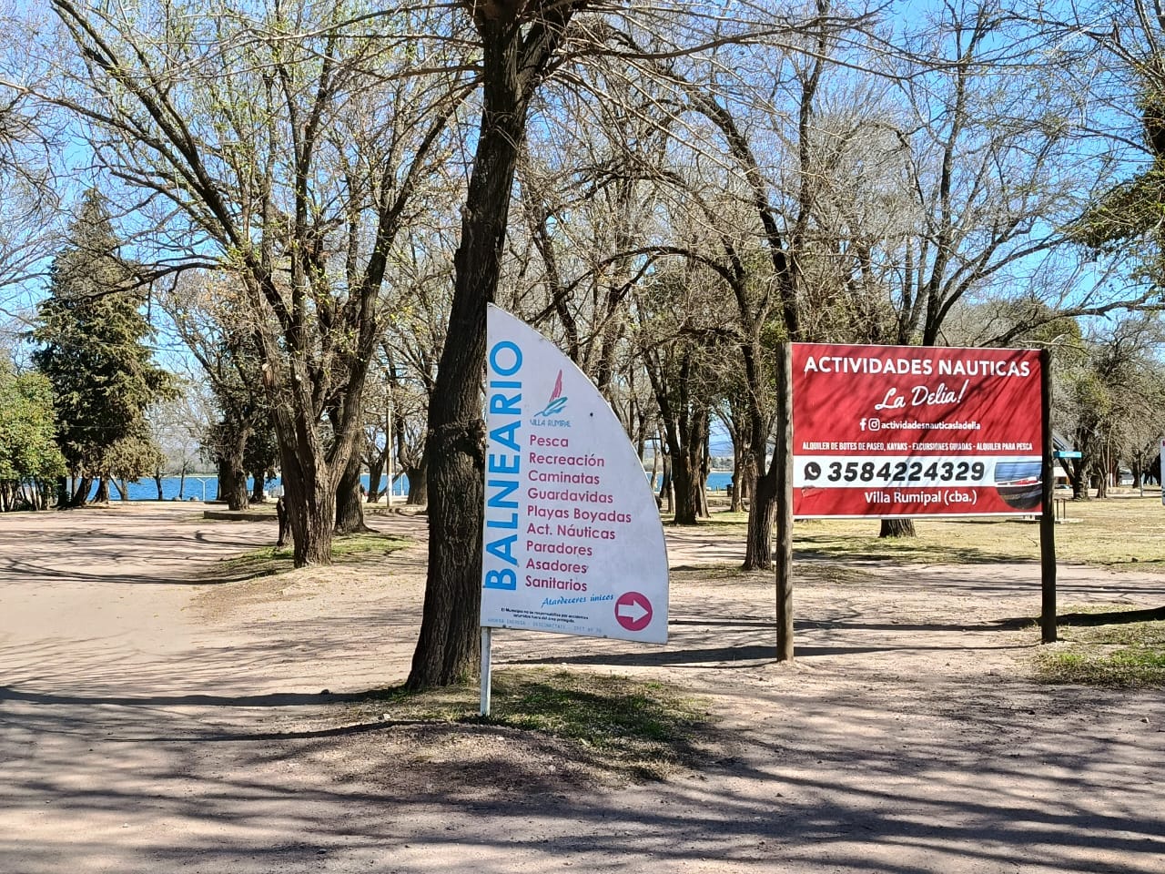 A orillas del Embalse, el Balneario Municipal de Villa Rumipal ofrece playa amplia con sombra y vistas a las sierras: plan ideal para pasar el día en familia o descansar frente al lago.