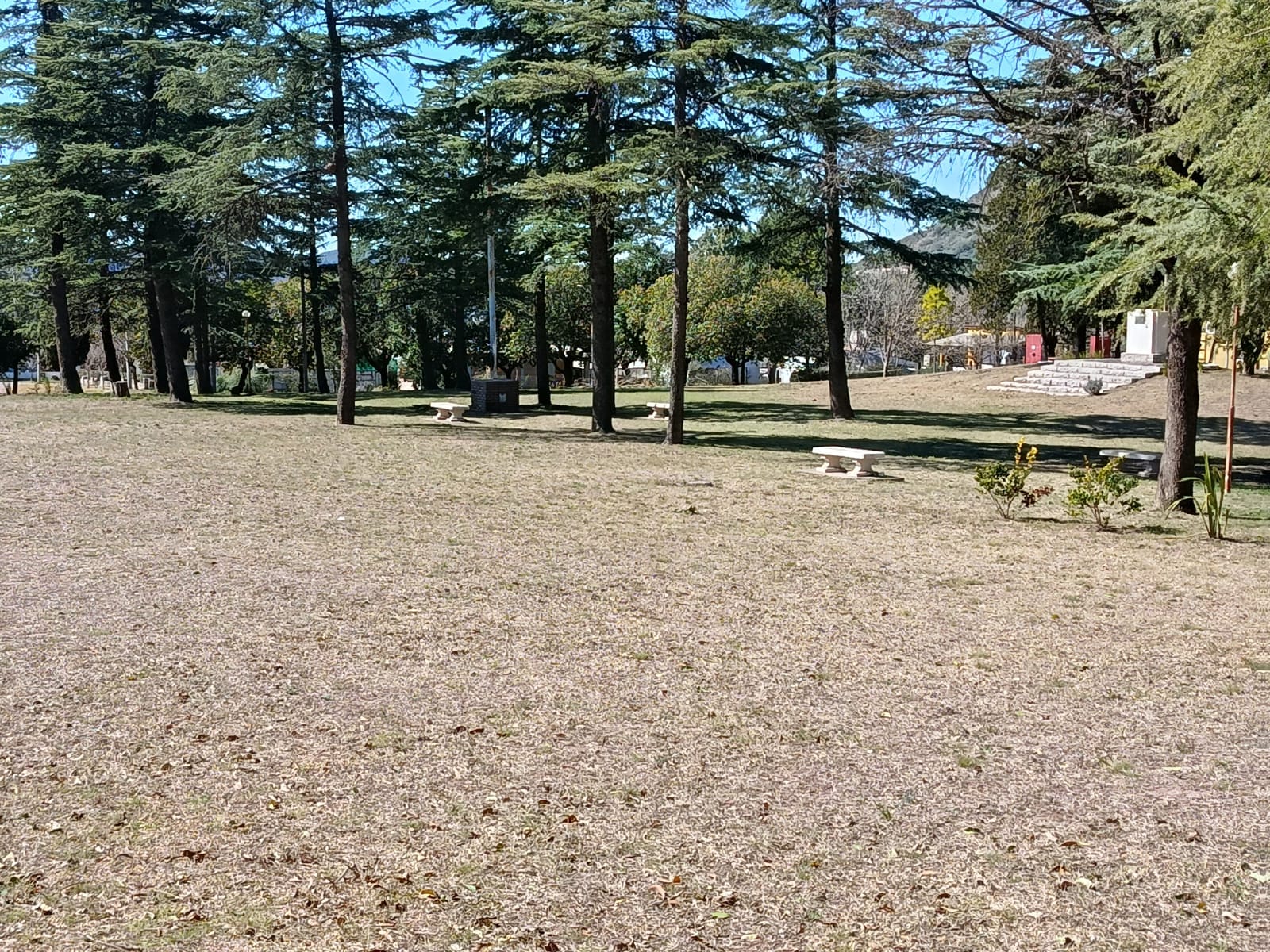 En pleno Villa del Dique, la Plaza San Martín es el punto de encuentro: verde, bancos y sombra para la pausa entre el embalse y el centro.